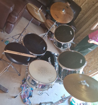 I have a rhythm and art / Evans hydraulic drum set it is a 5 peace drum set with stool and drum sticks plus extra symbols and Accessories it a 20 peace total counting stands all it needs is a kick drum pedal I'm asking 250.00$ for it